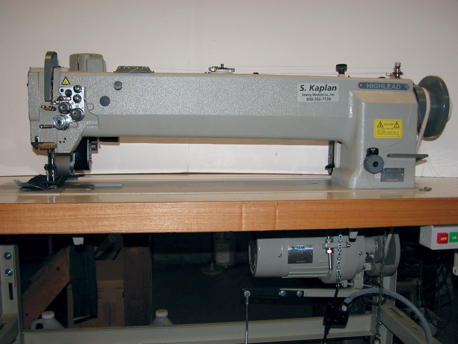 Long arm sewing machine: The SK-Highlead GC20698 long arm sewing machine is an excellent choice for tent shops needing long arm sewing capability for repairs and customization. Its powerful compound walking foot mechanism and 25-inch clearance under the sewing arm allow for sewing sidewalls, customizing clear vinyl walls, patching and repairs. (Machine shown with optional puller.) For more information, contact Kaplan Sewing Machine Co., www.kaplansewingmachine.com.