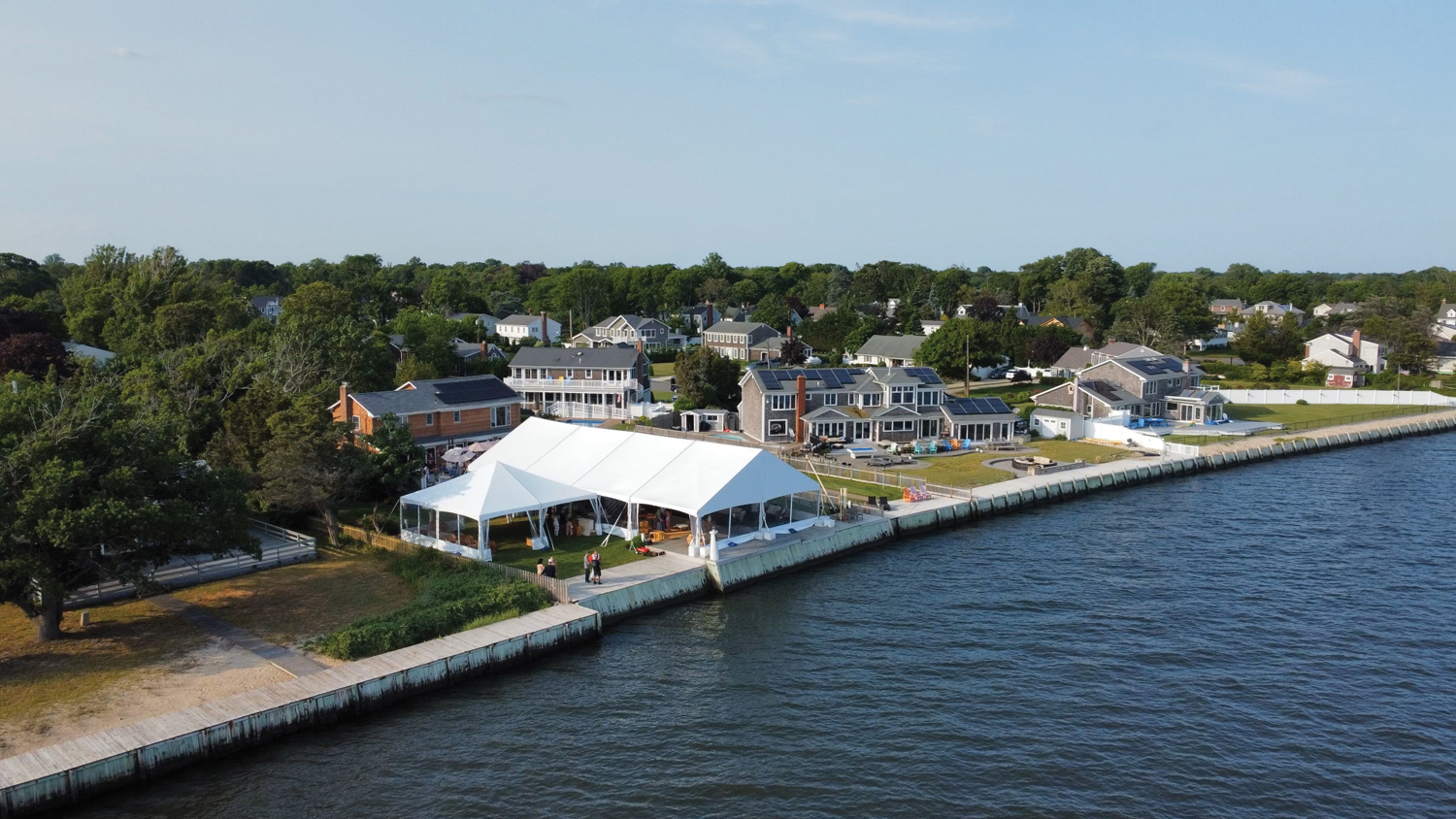 This All-White Garden Tent features custom 28’ clear doors and has the seating capacity of up to 250 guests with a custom 20m x 10m pergola extension, ideal for cocktail transitions or a lounge space. Structural aluminum frame engineered for extreme load-bearing needs. Fabric sidewalls for a soft, elegant finish.